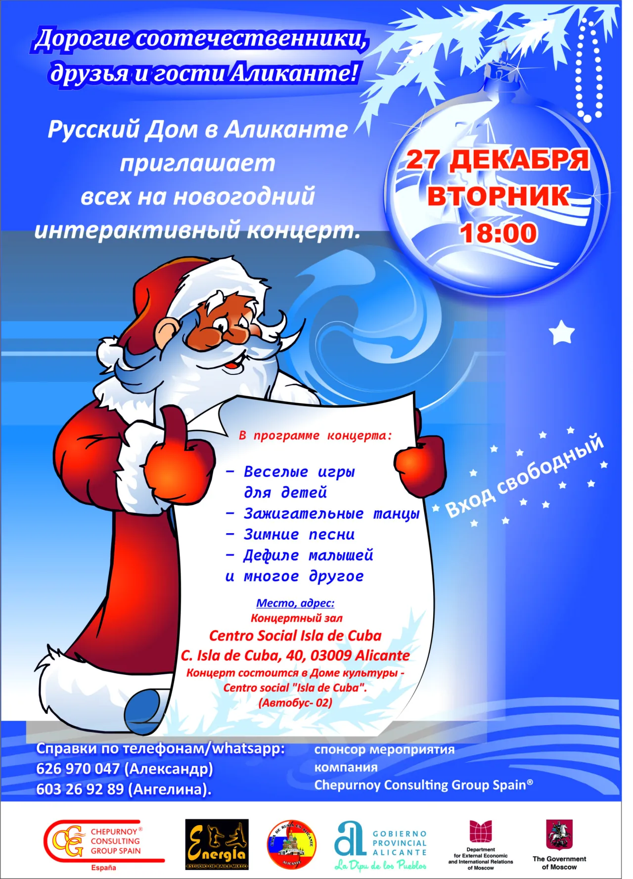 ПРАЗДНИЧНЫЙ НОВОГОДНИЙ ИНТЕРАКТИВНЫЙ КОНЦЕРТ АССОЦИАЦИИ “РУССКИЙ ДОМ В АЛИКАНТЕ”